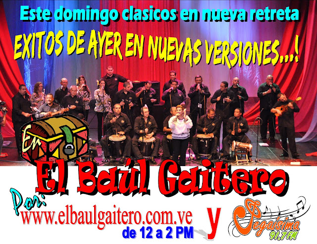 Ya todo esta listo para la velada familiar gaitera del fin de semana, hoy es "La Gran Bajada de los Furros" de 12 a 2 pm por Pegaisima 91.7 FM y la www.elbaulgaitero.com.ve